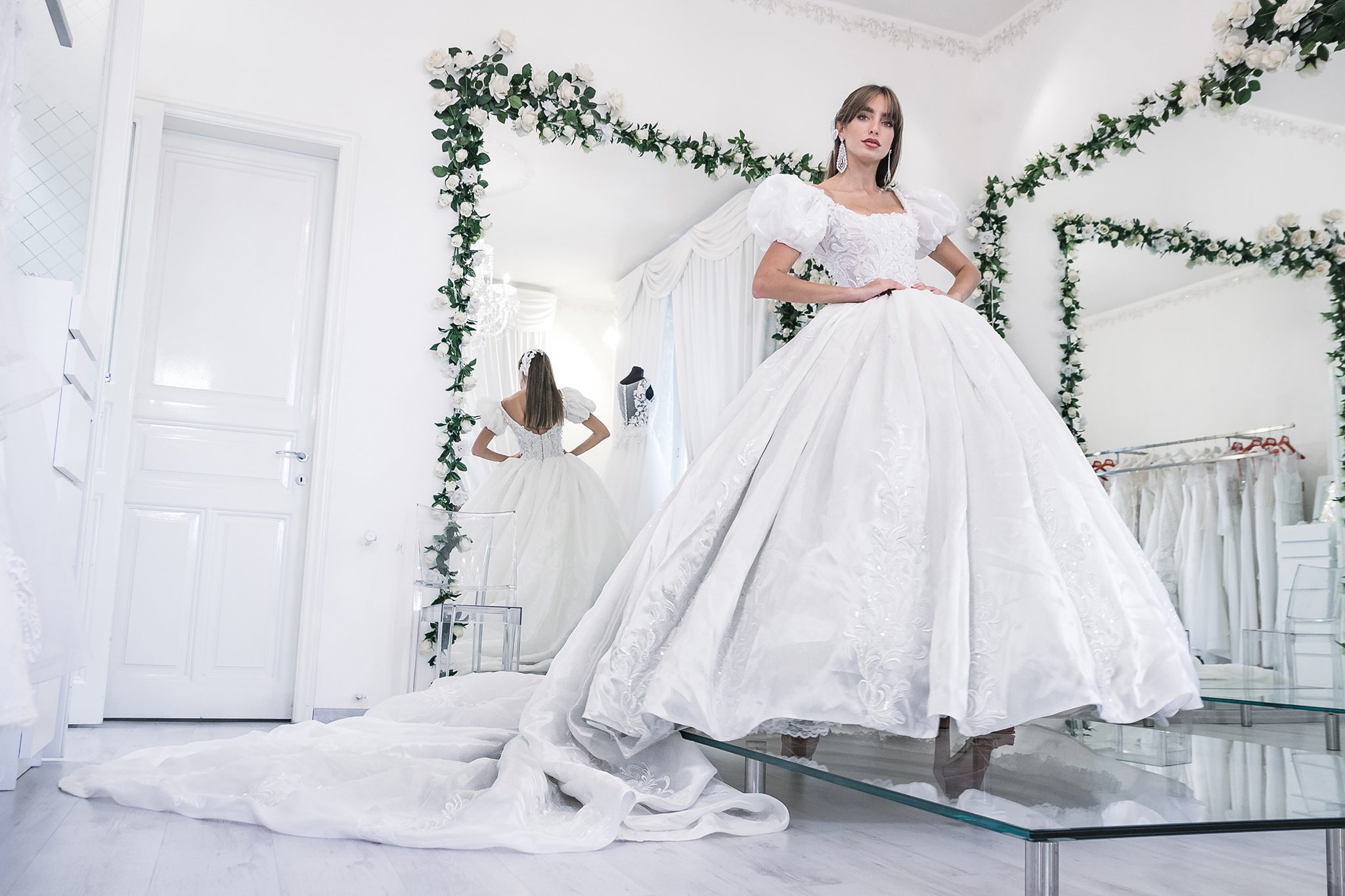 E’ sempre una magia l’atmosfera che si respira attorno ad una ragazza in abito da sposa, sia essa una modella o una vera sposa. Anche in questo caso abbiamo sognato nel vedere Valeria e Antonio posare per noi con quegli abiti stupendi. Abbiamo scattato in atelier e pure a Piazza Cairoli. Luce ambientale, per restituire un mood “dreamy” tipico da favola.
